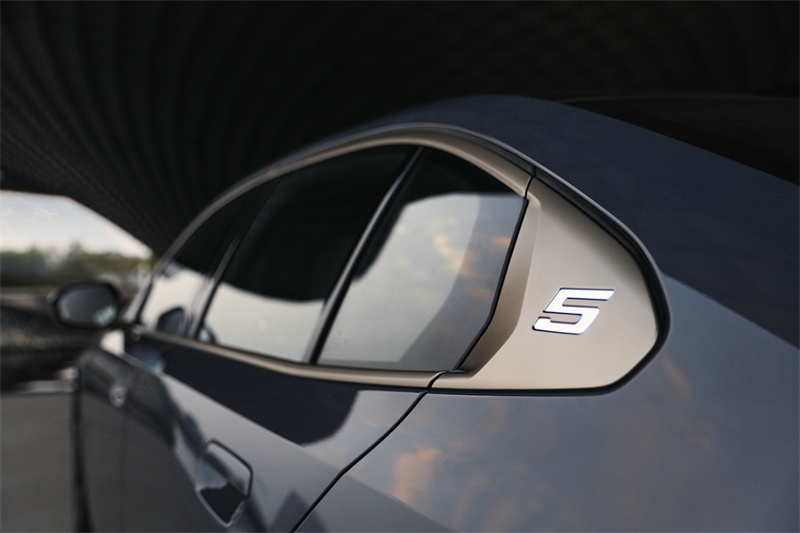 除“雙腎格柵”之外,經典的“霍夫邁斯特彎角”在全新BMW 5系上重新演繹并煥發新活力。“霍式彎角”是1961年推出的BMW 1500車型的一個經典設計細節,將原本圓滑的C柱微調以突出車輛的運動氣息。全新BMW 5系重新演繹的“霍氏彎角”,讓車門開角更大,側窗視野更敞亮。同時增添了“5的光耀標識”這一功能性的獨特創新設計,讓車輛啟動充電時呈現“呼吸”效果,明暗變化間彰顯獨特辨識度。