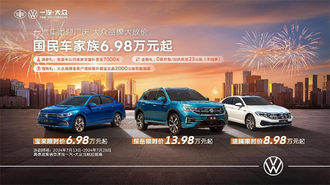 2024年7月,中國一汽迎來71年華誕。作為中國汽車工業的“長子”,中國一汽自成立以來就伴隨新中國的建設,鑄就了一部輝煌的中國造車史詩。一汽-大眾作為中國一汽的重要組成部分,其在33年間不斷推動品牌建設和產品創新,在轎車、SUV、新能源領域,打造了眾多國民級爆款產品,比如家轎市場常青樹寶來、A+級轎車細分市場的領跑者速騰以及家庭中型SUV的熱門車型探岳。為慶祝集團71周年,一汽-大眾特別推出“國民車家族”促銷活動,以回饋中國廣大消費者。6.98萬元起的超低入門價,即可擁有“國民車家族”車型,可謂誠意十足,而探岳的入門價格也到13.98萬元起,讓更多家庭觸手可及高品質出行。