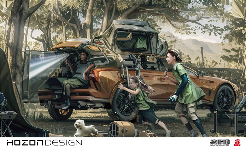 在主題演講的后半段,常冰放出了哪吒S獵裝大量首次曝光的設計概念圖。其豐富的應用場景透露出車型設計的巧思與設計師視角的產(chǎn)品定位。