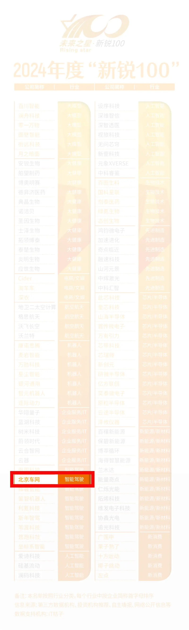 《中國企業家》“未來之星”評選旨在尋找未來引領行業發展的明日之星,迄今已歷經24年,包括騰訊、百度、小米等公司都曾入圍。“新銳100”是系列評選之一,綜合企業估值、核心指標增長、市場認可度與社會形象等,從上萬家企業中篩選出分屬在16個行業的100家新銳公司。
