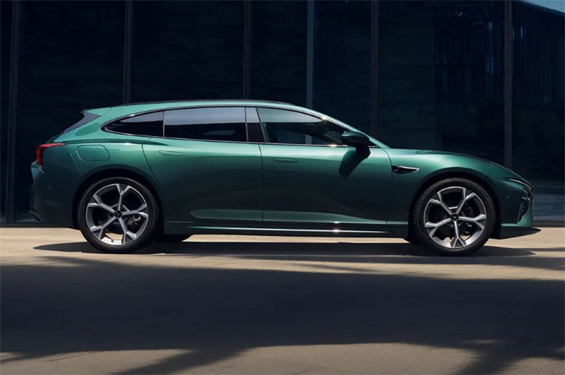 哪吒S獵裝擁有4980mm的車長和2980mm的軸距,這樣的尺寸儼然屬于C級車的水準,車身修長,側面窗線比例協調,D柱成圓角設計,配合后半段腰線,看起來很有獵裝車應有的姿態。