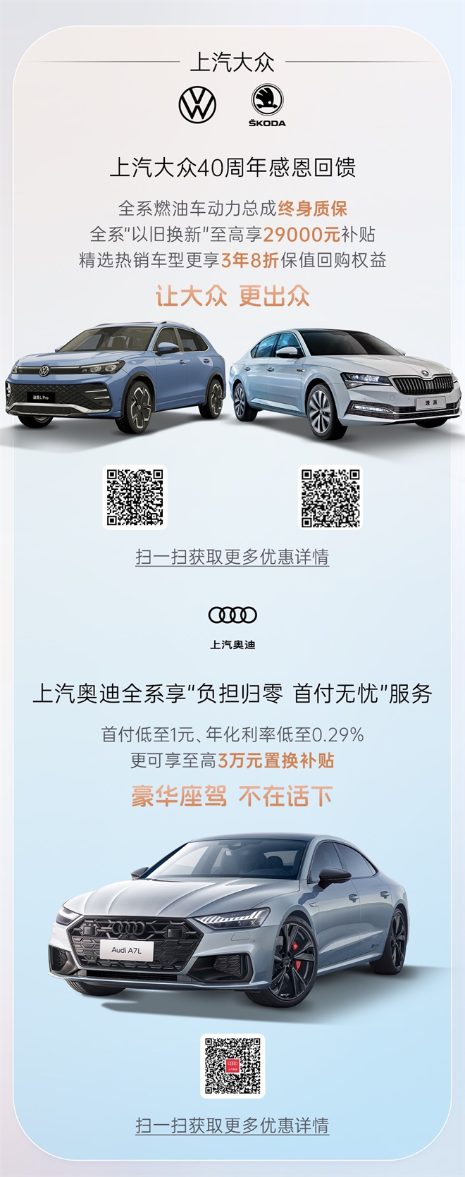優惠內容干貨滿滿,誠意十足。此次上汽旗下參與活動的車型,在疊加以舊換新補貼后,整體優惠幅度可達五至八折,同時還特別推出了300多輛“限量彩蛋車”,單車優惠金額最高可達12萬元,免首付、免利率、免保險,現金優惠、置換補貼、終身免費保養。“滿滿干貨”讓您購車用車體驗“再升級”!(上汽集團具體購車細則請見下文長圖)