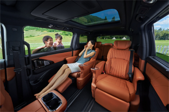 豪華MPV空間不在于大,更在于靈活多變。E9超級快充版行李箱Y向尺寸增大137mm,市場主流高爾夫球桿包可輕松放下,并新增同級獨有行李廂二排座椅一鍵調節功能,放置大件行李時原地一按即可前移二排擴大空間,配合三排同級唯一220mm滑軌,收納超大行李時更便利,讓車成為貼心舒享的移動之家。