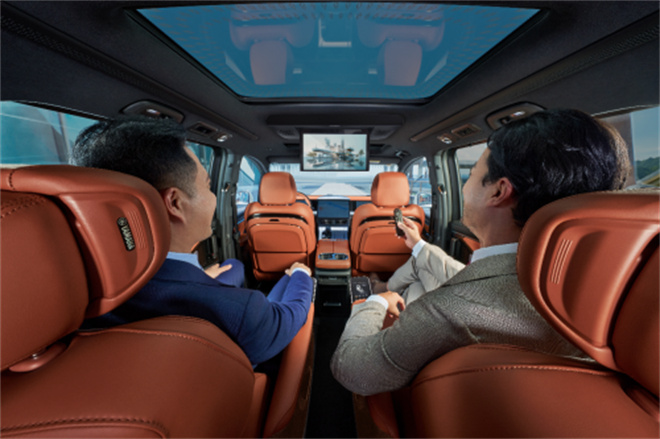為了滿足用戶對新能源豪華MPV的更高階需求,E9超級快充版豪華再升級,打造旗艦級奢華座艙體驗,讓每一排都能享受愜意坐感。一二排增加坐墊按摩,升級為16點式SPA級按摩座椅,此外,二排配備同級獨有半苯胺超級零重力座椅,實現躺姿更無壓,肩部高度增加,腰部支撐提升,提供超絕的支撐力與包裹感。