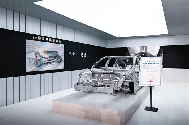 在安全性方面,MAZDA EZ-6配備了7橫5縱的全鋼籠式結(jié)構(gòu)群,車身高強(qiáng)度鋼材占比超過86%,電池安全性能達(dá)到國(guó)標(biāo)的20倍以上。它成功通過了中汽中心行業(yè)首個(gè)“貨車橫向夾擊疊加刮底挑戰(zhàn)”碰撞測(cè)試,并獲得了“001號(hào)頂級(jí)安全證書”。此外,長(zhǎng)安馬自達(dá)還推出了首個(gè)終身零燃權(quán)益保障和首年600萬元的智駕保障,為用戶提供全方位的安全保障。
