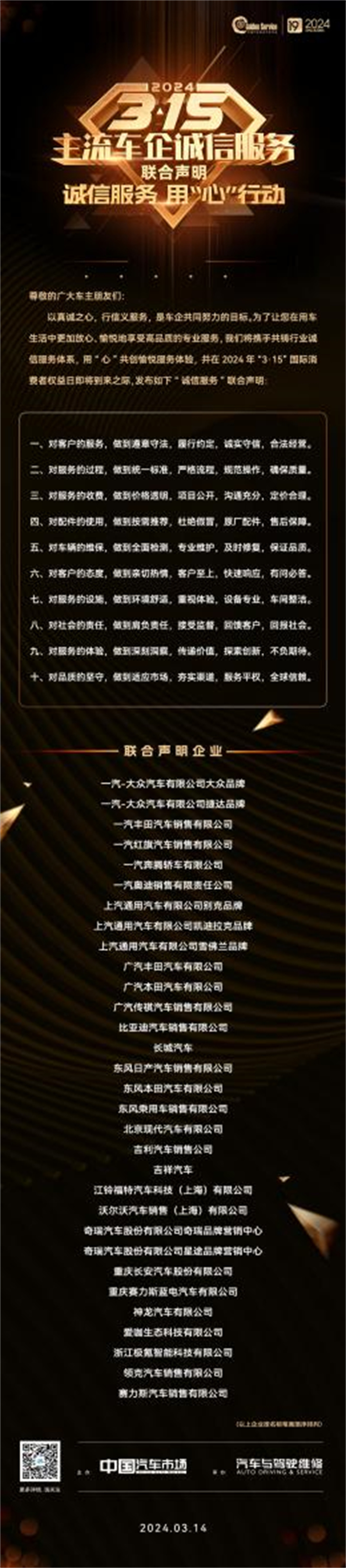 “3·15”車企誠信服務聯合聲明