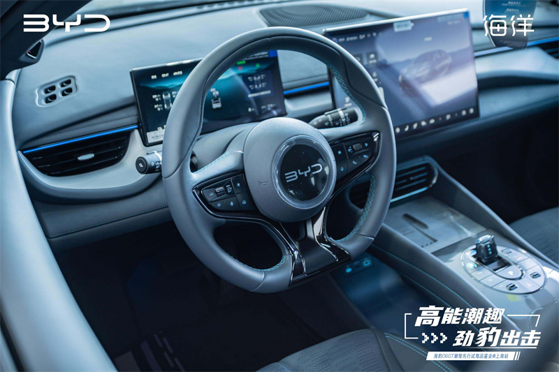 內飾方面,并沒有太多全新的亮點,仍然采用了深受大家喜愛的海洋網家族式設計風格,并且配備了DLink-100高階智能座艙系統。繼承了比亞迪特色的15.6英寸自適應旋轉Pad,在流暢度和清晰度上表現優異。值得一提的是,這款海豹06 GT的方向盤握感特別出色,這一點只有親自體驗過才知道。