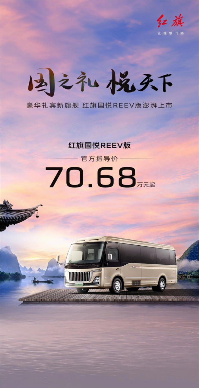 2025年3月25日,桂林——在山水甲天下的桂林之畔,紅旗品牌以“國之禮 悅天下”為主題,正式發布了旗下首款豪華禮賓混動中型客車——紅旗國悅REEV(增程式混動版),官方指導價70.68萬元起。作為紅旗品牌新能源賽道的重要里程碑,這款車型不僅延續了紅旗“禮獻天下”的文化基因,更以創新的增程技術、超長續航和智能化配置,為中國航旅行業樹立了綠色出行的新標桿。