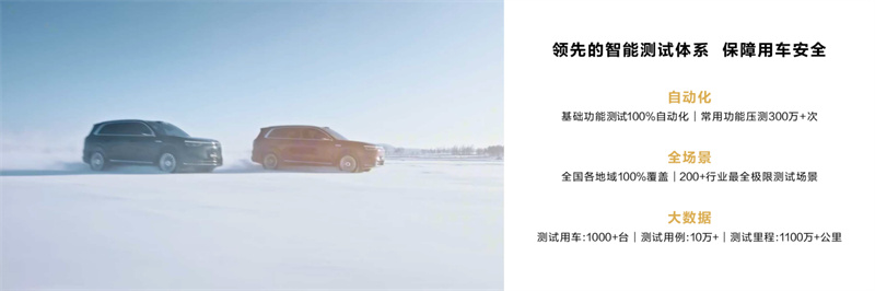 依托行業(yè)領(lǐng)先的智能測(cè)試體系,問(wèn)界更以自動(dòng)化、大數(shù)據(jù)、全場(chǎng)景為支撐進(jìn)行全方位測(cè)試驗(yàn)證,保障用戶用車(chē)安全。