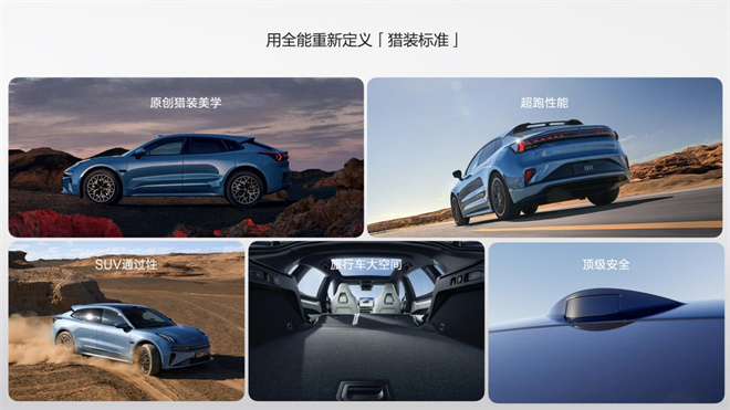 ● 極氪用全能重新定義獵裝:建立“原創獵裝美學、超跑性能、SUV通過性、旅行車大空間、頂級安全”五大全能獵裝產品標準,做到“一車頂四車,獵裝即全能”。
