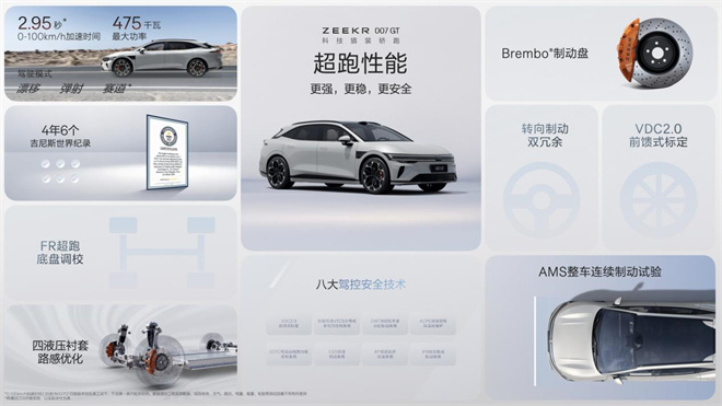 ● 超跑性能:極氪007GT開得快、剎得住、控得穩,享受速度更駕馭速度,極氪式操控創造吉尼斯世界紀錄。4年創造6項紀錄,極氪不造慢車,造更安全的高性能車。