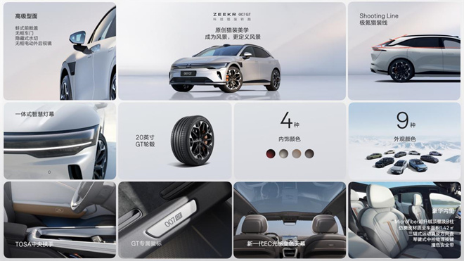 ● 極氪打造獵裝家族:極氪001定位“豪華獵裝轎跑”,是全能獵裝開創者。極氪007GT定位“科技獵裝轎跑”,是極氪獵裝家族新成員、全能獵裝普及者,延續極氪獵裝五大全能產品標準,在兼顧空間與豪華的同時,駕控更靈活,體驗更科技,造型更時尚。