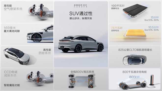 ● SUV通過性:同級最優底盤能力、行業最強三電系統、領先超快充補能體系,極氪007GT擁有通過、脫困、穿越三大技術能力,陪伴用戶奔赴山海,探索未知和遠方。