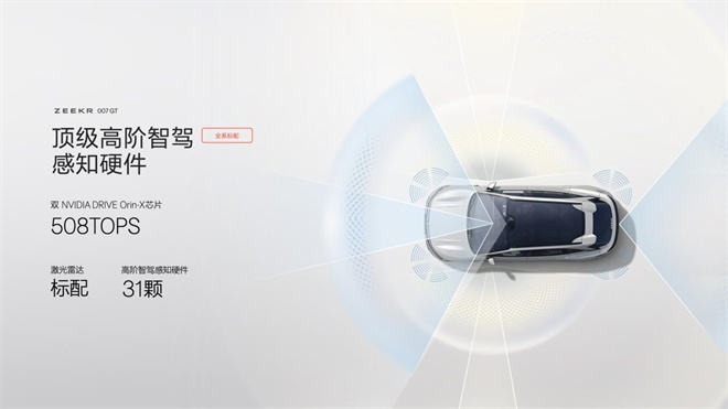 極氪007GT全系標配NVIDIA DRIVE雙Orin-X芯片,算力高達508TOPS。全系標配激光雷達等31顆高階智駕感知單元,在極端天氣、光線驟變及異形障礙物等場景下感知精度更強,能提前100米發現靜止車輛事故,安全冗余同級最強。在激光雷達加持下,截至2025年3月底,極氪千里浩瀚智駕AEB功能已成功幫助車主有效化解361.3萬次碰撞風險。