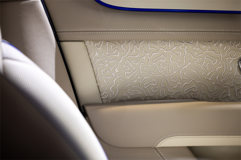 觸覺與視覺上的精妙設計還包括氛圍燈、車門內飾與座椅上的舒適風格菱形絎縫、頭枕處的“Azure”刺繡標識、天然啞光直紋胡桃木飾面,以及旅行配置、舒適配置及氛圍燈套件。照明式迎賓踏板帶有“Azure”字樣,成就點睛之筆。
