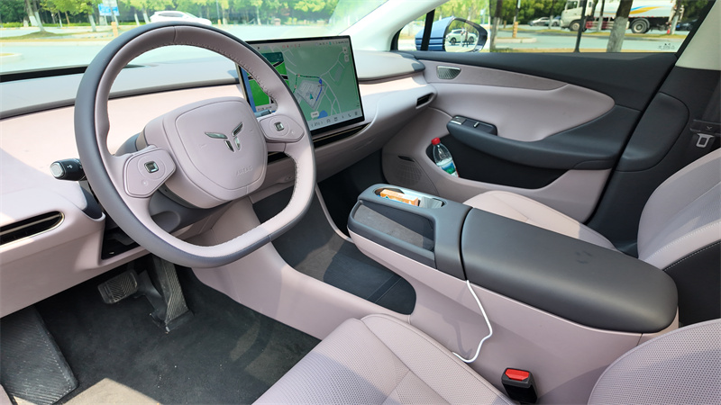 座艙設計則大膽擁抱極簡主義。天工06取消傳統儀表盤,將空調、后視鏡調節等功能集成于15.6英寸懸浮中控屏,搭配雙輻式方向盤觸控按鍵,營造出“數字客廳”般的清爽視野。不過,初次接觸可能需要適應操作邏輯。值得稱贊的是細節質感:仿麂皮座椅支持14向電動調節與穴位按摩,門板、中控等觸手可及之處均以軟質材料包覆,詮釋了豪華不應止于視覺。
