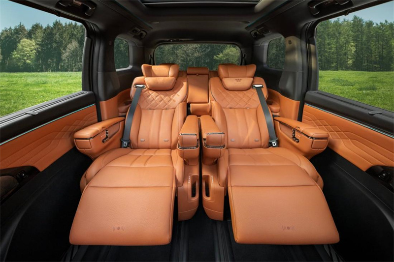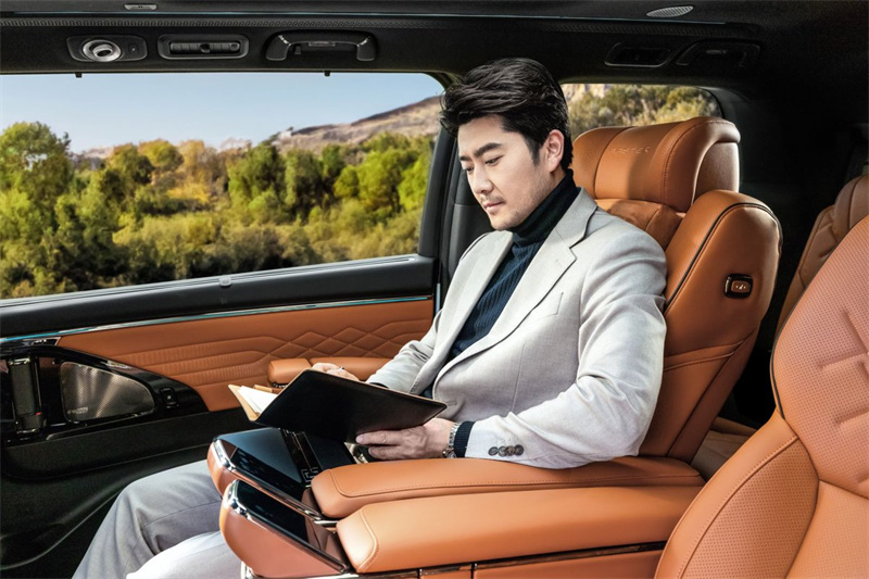進入車內(nèi),環(huán)抱式奢享座艙采用大量高檔真皮、木紋與金屬材質(zhì),觸感細膩且視覺質(zhì)感十足。座椅采用零重力設(shè)計,具備多向電動調(diào)節(jié)、加熱、通風及按摩功能,搭配航空級頭枕,為駕乘者帶來頭等艙般的舒適體驗。車內(nèi)還精心設(shè)計了氛圍燈系統(tǒng),可根據(jù)不同場景切換色彩,營造出溫馨、浪漫或商務(wù)的氛圍,讓每一次出行都充滿儀式感。