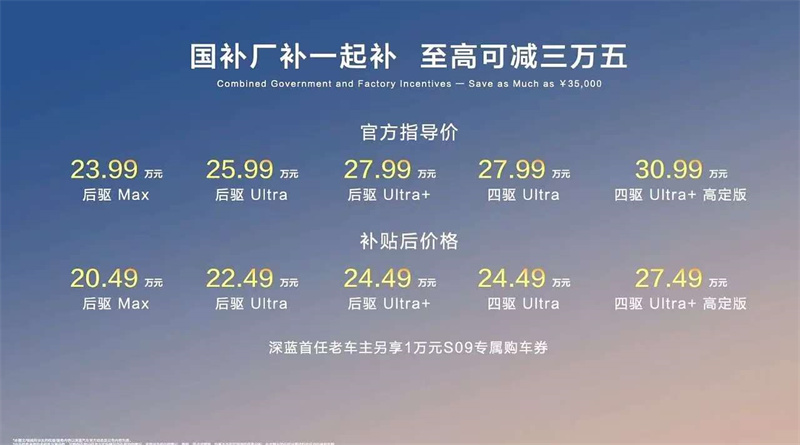 為回饋消費者的支持與信任,深藍S09推出價值高達3.5萬元的購車權(quán)益政策 ,涵蓋金融、充電、保養(yǎng)等多個方面,讓用戶購車、用車全程無憂。