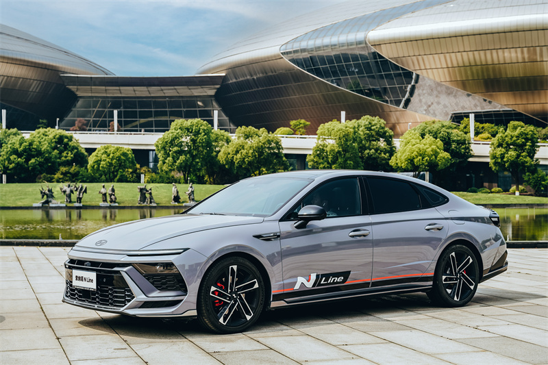 比如活動現場展出的索納塔N Line,動感的溜背設計,流暢挺拔的腰線,18英寸的熏黑式輪圈搭配紅色涂裝卡鉗,無不更顯個性與運動感。車內略帶傾斜的雙12.3英寸全景曲面屏和摩斯密碼真皮方向盤,加上運動座椅的配置更是引人注目。作為性能標桿,索納塔N Line 2.0T+8AT 高效動力組合,加上R&H操控穩定,能夠應對各種駕駛需求。如此“有顏有實力”的索納塔N Line,不只是賽道基因的延續,更成為城市生活中的個性表達。對年輕車主來說,這樣的“高性能”不是為了炫技,而是用來“玩得漂亮”。