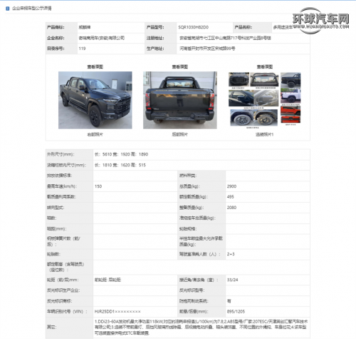 【工信部披露RELY威麟首款皮卡信息】
