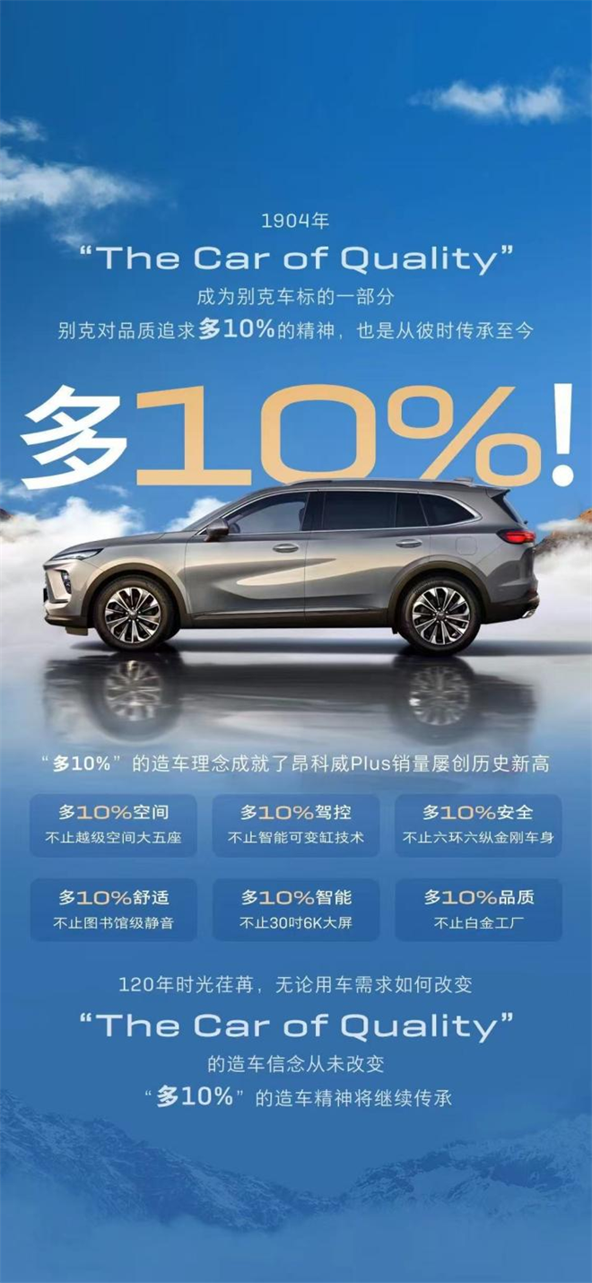 早在120年前,“The Car of Quality”是別克車標的一部分,品質“多10%”造車理念一直傳承至今。“多10%”理念成為別克昂科威屢創佳績的源頭動力,也為同級樹立了價值標桿。