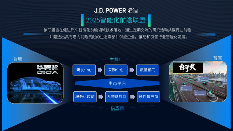2025年6月30日,上海—全球領(lǐng)先的消費者洞察與市場研究機(jī)構(gòu)J.D. Power|君迪今日正式啟動2025智能化前瞻聯(lián)盟評選,在汽車產(chǎn)業(yè)“新四化”轉(zhuǎn)型浪潮下,輔助駕駛與智能座艙作為智能化核心賽道,正面臨技術(shù)迭代迅速、用戶需求多元的雙重挑戰(zhàn)。傳統(tǒng)技術(shù)與新興方案的碰撞,亟需行業(yè)建立統(tǒng)一標(biāo)準(zhǔn)與交流平臺,為填補(bǔ)這一空白,J.D. Power攜手同濟(jì)大學(xué)HVR Lab(人車關(guān)系實驗室)、XAI Lab (人工智能實驗室)與AutoLab、睿思齊,共同發(fā)起“智能化前瞻聯(lián)盟”。該聯(lián)盟旨在促進(jìn)汽車智能化領(lǐng)先技術(shù)落地,通過搭建交流平臺共謀行業(yè)發(fā)展,并甄選出具有潛力的零部件供應(yīng)鏈企業(yè)予以表彰,推動和引領(lǐng)行業(yè)智能化突破。