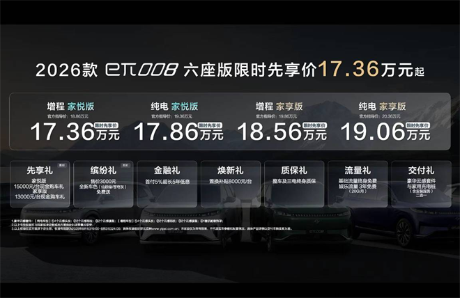 奕起熱愛(ài),派生精彩。8月1日,東風(fēng)奕派汽車科技公司戰(zhàn)略發(fā)布會(huì)暨新車發(fā)布會(huì)在武漢隆重舉行,2026款東風(fēng)奕派eπ008六座版煥新上市。新車在“舒心品質(zhì)、舒心科技、舒心駕控、舒心守護(hù)” 四大維度全面升級(jí),官方起售價(jià)18.86萬(wàn)元起,限時(shí)先享價(jià)17.36萬(wàn)元起,為用戶帶來(lái)極具誘惑力的超值選擇。8月31日前下定限時(shí)享多重購(gòu)車權(quán)益,其中無(wú)論是8000元/臺(tái)的置換補(bǔ)貼、整車及三電終身質(zhì)保基礎(chǔ)權(quán)益,還是至高15000元/臺(tái)先享禮和3000元車色免費(fèi)贈(zèng)送限時(shí)權(quán)益,都展現(xiàn)出極高的誠(chéng)意。
