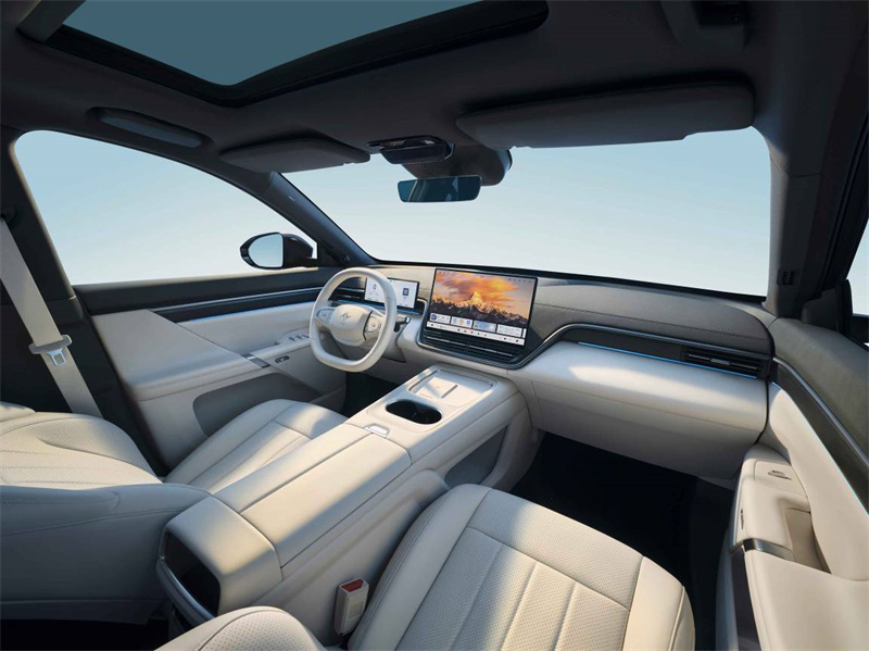 內飾設計亦不失格調,車內觸手可及之處,面料全面升級為云感親肌超軟材質,覆蓋面積達到18平米,大幅提升了內飾的質感。細節之處更見巧思,經過改良的50W無線充電面板,表面采用仿麂皮材質,有效防止滑落;電釋放內門把手采用按鍵開啟設計,輕觸即開;主副駕標配LED柔光美妝鏡,光線柔和不刺眼。一系列優化從日常場景出發,共同提升了用車的便利性與幸福感。