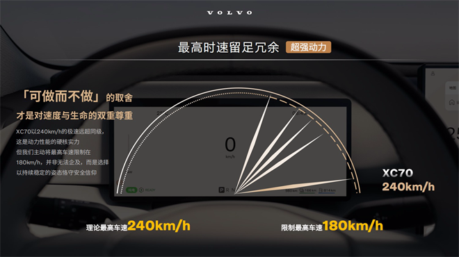 當(dāng)我以為240km/h極速是性能彩蛋時,沃爾沃反手就主動限速到了180km/h。「動力冗余是尊嚴(yán),速度克制是信仰。」安全白皮書上,再次看到了沃爾沃全新XC70對速度和生命的敬重。