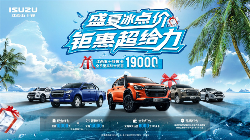 這個夏天,抓住“冰點價”清涼風暴的絕佳時機,開上江西五十鈴皮卡,駕馭清涼,暢享酷爽夏日!