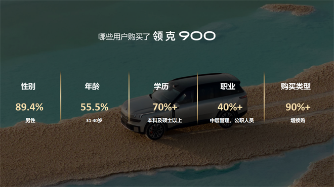 從購(gòu)車情況來(lái)看,領(lǐng)克 900 的增換購(gòu)率高達(dá) 90% 以上,其中近40% 來(lái)自 BBA 車主。BBA 車主選擇增換購(gòu)領(lǐng)克 900 已成為一種趨勢(shì),他們看中的是領(lǐng)克 900 兼具傳統(tǒng)豪華車企的底盤操控、性能與安全,以及新勢(shì)力的智能化體驗(yàn),使其成為傳統(tǒng)豪車用戶在新能源時(shí)代的心智首選。??