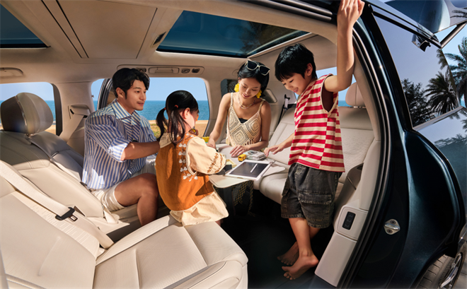 在空間設(shè)計(jì)上,領(lǐng)克900以5240mm的超長(zhǎng)車身為基礎(chǔ),實(shí)現(xiàn)同級(jí)罕見的88.2%空間利用率,6.16㎡的超大艙內(nèi)面積配合第三排1.1米超長(zhǎng)坐墊及超寬奢空間,三排六座皆配備加熱、按摩功能,重新定義六座SUV的舒適基準(zhǔn),讓第三排不再將就。SUV中首創(chuàng)的雙180°電動(dòng)旋轉(zhuǎn)座椅可將座艙空間一鍵切換為“移動(dòng)會(huì)客廳”,可對(duì)坐、可向外90°旋轉(zhuǎn)、可一鍵成床,搭配電動(dòng)天地門與兩噸級(jí)電動(dòng)拖車鉤,為用戶解鎖多元戶外生活場(chǎng)景。?