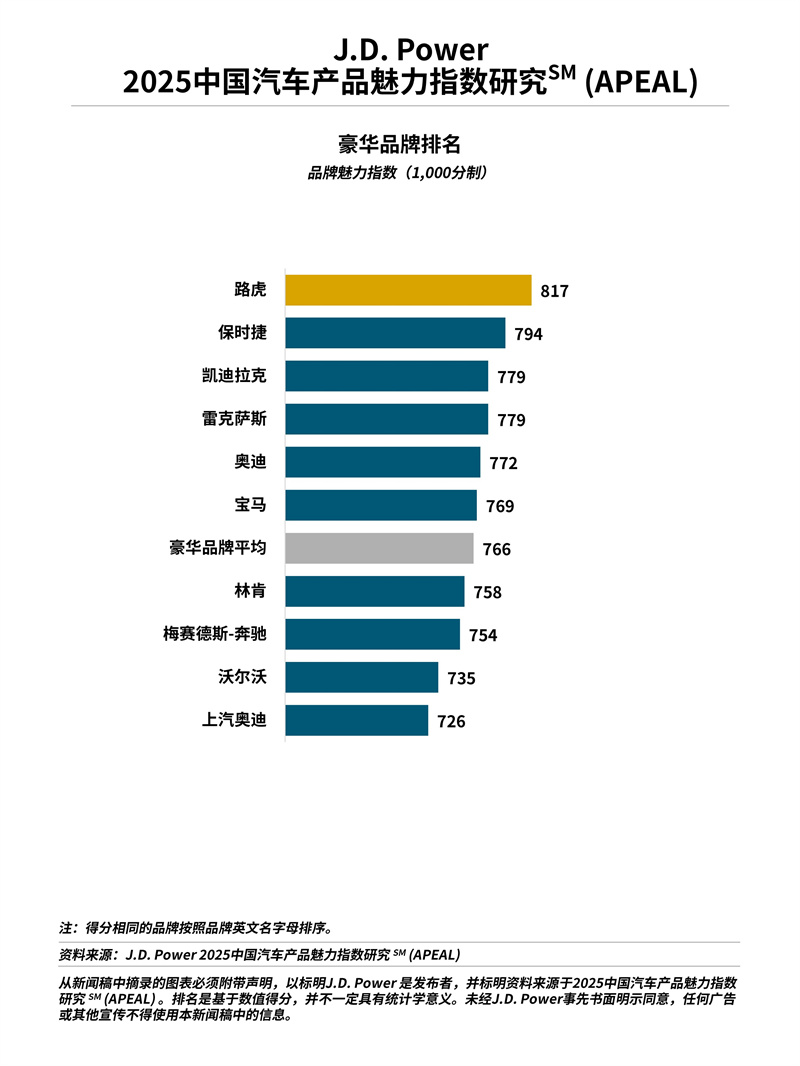 路虎、一汽-大眾、奇瑞分別排名豪華品牌、主流品牌和自主品牌魅力指數(shù)第一