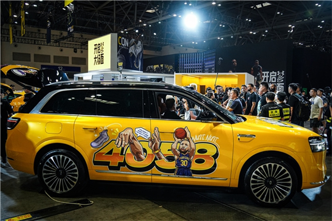 活動現場,一輛特別定制的問界M9吸引了所有目光。這輛“庫里戰車”外觀由五位藝術家與知名汽車博主聯合打造,由東向西跨越五城三千公里,沿途收集球迷的祝福與心意,將中國球迷的熱情匯聚于車身之上,最終駛抵重慶。