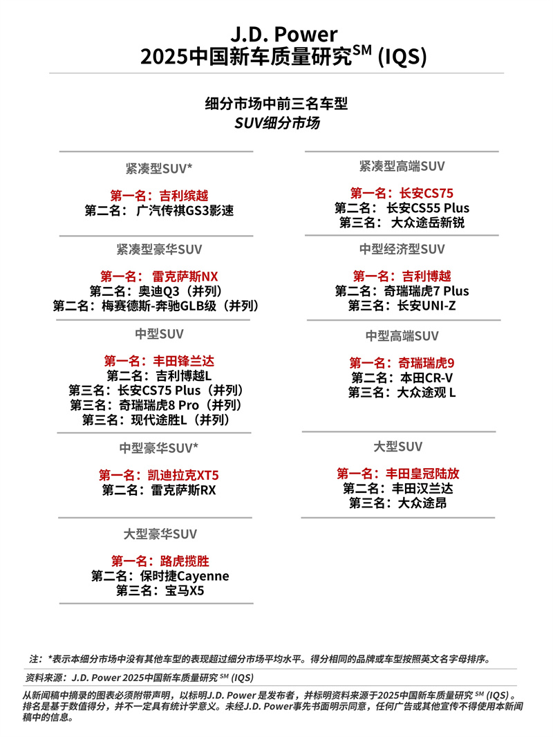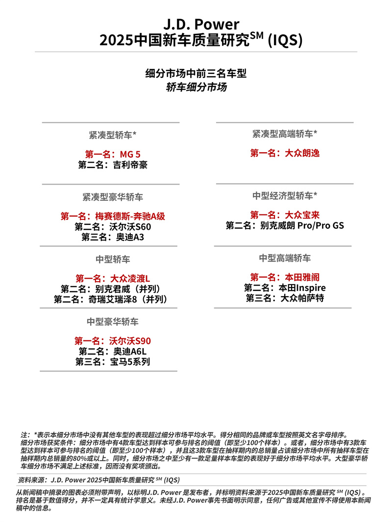 車型層面,今年研究中共有18個細分市場的18款車型摘得獎項。