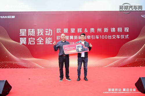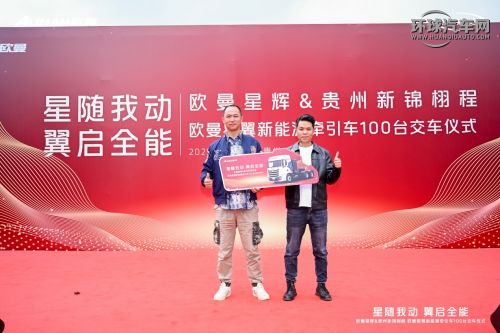 簽約儀式后,歐曼星輝營銷公司云貴分公司總經理李錦松與客戶共同開啟100臺歐曼星翼400kWh新能源牽引車正式交付的里程碑時刻,見證歐曼新能源運力裝備成為貴州物流客戶降本增效的新選擇,助力客戶全面強化運輸競爭力、提高運營效益,贏領未來。
