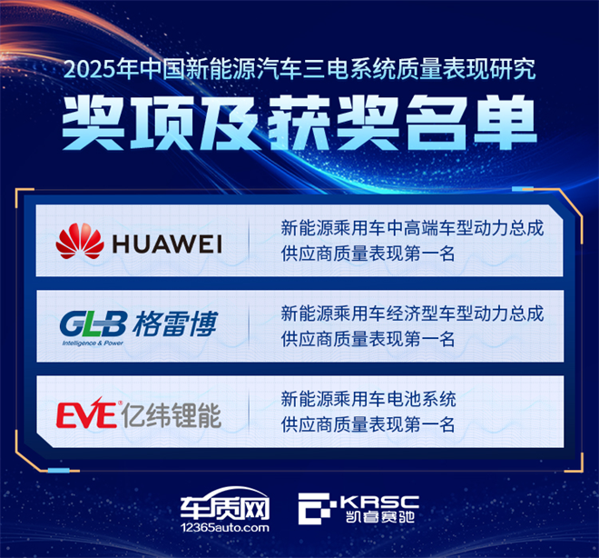 根據《2025年中國新能源汽車三電系統質量表現研究》結果,主辦方公布了新能源汽車三電系統質量表現優秀供應商。電池系統供應商質量表現第一名和動力總成供應商質量表現第一名的獲獎企業,他們在各自領域提供的產品質量表現優異,精準滿足用戶對高品質的追求。