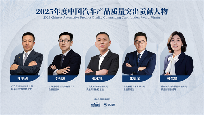 經過六個月的深入調研,五位佼佼者獲得2025年度中國汽車產品質量突出貢獻人物獎。他們分別是:廣汽傳祺汽車有限公司副總經理/首席質量官葉少劍,江蘇悅達起亞汽車有限公司品質室室長李相憲,上汽大眾汽車有限公司質量保證執行總監張永鋒,長安福特汽車有限公司質量部總監張德虎,重慶長安汽車股份有限公司質量部副總經理韓慧娟。他們憑借創新的質量管理方法,成功推動了企業從單純的產品質量向全方位用戶體驗的升級。
