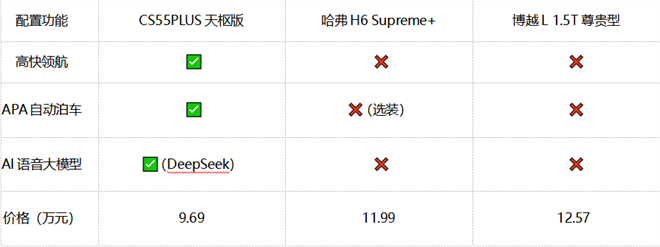 · 傳統保守派:哈弗H6基礎版(9.89萬)仍可靠,但智駕差距明顯;