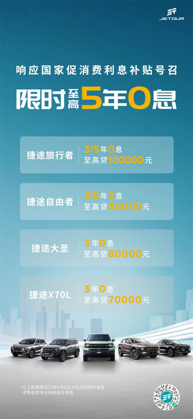 為了讓更多人能即刻開啟“向往的旅行”,捷途汽車9月推出限時鉅惠,方盒子冠軍家族更是誠意拉滿,捷途旅行者可享至高5年0息貸款+6次免費保養(yǎng),至高可貸100000元。捷途自由者置換補貼高達15000元,至高可貸80000元。