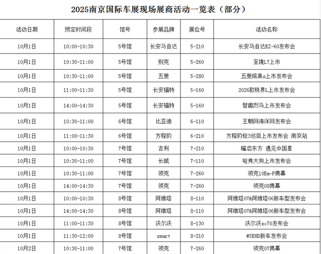 2025(第二十三屆)南京國際車展暨南京度假房車展(以下簡稱南京國際車展)將于10月1日在南京國際博覽中心盛大開幕,房車展開展到10月3日,車展持續開展到10月6日。