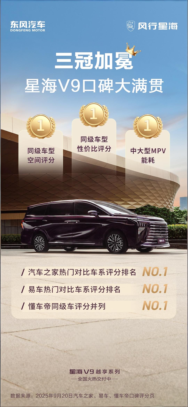 三大平臺(tái)口碑榜首+銷量第一?星海V9:20萬級(jí)MPV的“標(biāo)準(zhǔn)答案”來了!