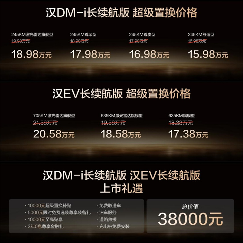 在2025年競爭激烈的中高端轎車市場中,漢長續航版以“技術升維+價格親民”的組合拳形成差異化優勢。其15.98萬-20.58萬元的售價區間,疊加至高3.8萬元的七大禮遇,將中高端轎車的價值底線拉至新高度。從百萬銷量里程碑到全新價值標桿,比亞迪漢長續航版的上市不僅是產品迭代的縮影,更是中國品牌技術自信的彰顯。