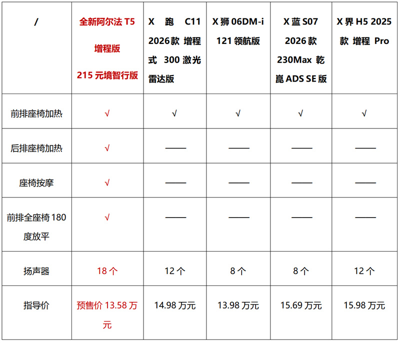 從年輕時尚外觀設計到北汽神擎增程的硬核加持,從全系標配寧德時代電池到全球首個搭載驍龍8775艙駕一體解決方案,從麥格納世界級品質到“近0醛0苯”健康座艙,全新阿爾法T5“一車滿足全家需求”,讓中級車“不再中級”,帶給眾多年輕家庭時尚動感、駕乘自由、智能舒適、可靠安全的SUV新體驗。