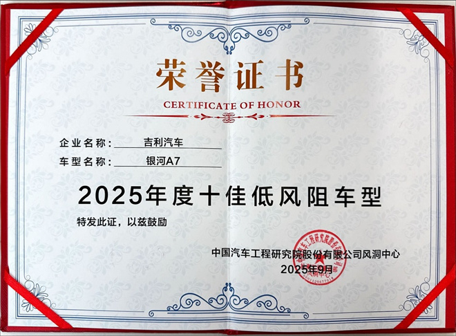 9月16日,“2025年中國汽車工程學會汽車空氣動力學會分會學術年會”圓滿舉行,吉利銀河A7憑借0.229Cd的超低風阻系數,榮膺中國汽車工程學會頒發的“2025年度十佳低風阻車型”。能夠在汽車空氣動力學領域規模最大、規格最高、影響力最深遠的學術會議上獲此殊榮,這不僅是對吉利銀河A7全球家轎新標桿實力的高度認可,也再次彰顯了吉利在造車領域深耕細作的技術底蘊。
