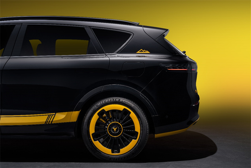 新車外觀多處細節(jié)還采用流光暗影配色裝飾件,引擎蓋、車門下部加入了亮黃色拉花涂裝,前后保區(qū)域及翼子板亦有亮黃裝飾點綴,進一步強化運動基因;此外,專屬“峰回路轉(zhuǎn)” 尾翼裝飾以及定制FREE+玄金尾標,則彰顯了車輛的特別身份;新車還配備20英寸流光馭風(fēng)動感輪轂,黑色輪輻與明亮熱情的流金色輪輞交相輝映,搭配黃色卡鉗,不僅拉滿運動生命力,更在轉(zhuǎn)動時呈現(xiàn)“流光”環(huán)繞的動態(tài)效果,每一處細節(jié)都經(jīng)得起凝視。