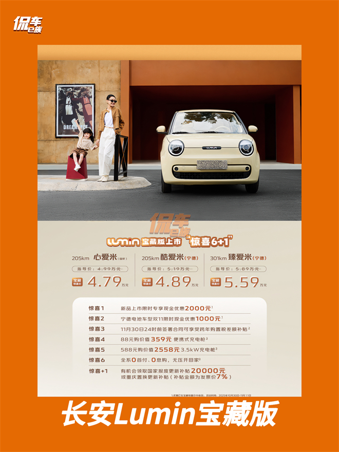 當微型車陷入配置內耗,Lumin寶藏版用4.79萬-5.59萬定價和64項全維升級,重新錨定“精品代步”標準。其背后的產品邏輯,直擊用戶三大痛點。