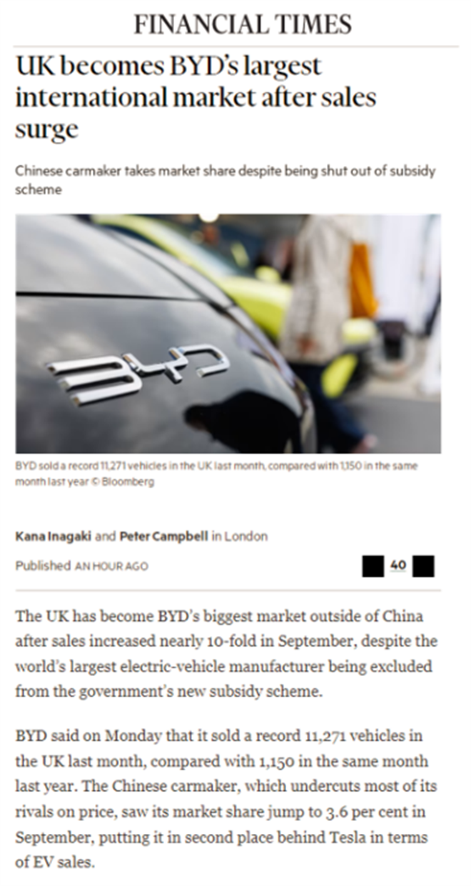 圖4:《金融時報》:英國銷量飆升,成為比亞迪最大的國際市場