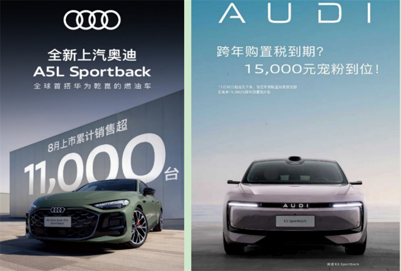 新能源領(lǐng)域,奧迪E5 Sportback火熱交付,積累用戶信賴。面對新能源購置稅政策調(diào)整,上汽奧迪推出補(bǔ)貼計(jì)劃:11月30日前下單E5 Sportback,若非用戶原因2026年交付,可享至高1.5萬元補(bǔ)貼,既降低用戶成本,更體現(xiàn)快速應(yīng)對市場的能力,助力搶占豪華新能源份額。