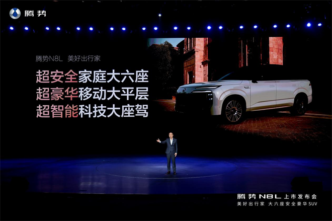 作為騰勢布局大六座豪華SUV市場的戰略車型,騰勢N8L以“超安全家庭大六座、超豪華移動大平層、超智能科技大座駕”,精準回應了當代家庭對高品質出行的需求,它不僅是出行工具,更是家庭情感空間,人、車、家的深度融合,推動中國家庭出行方式邁向更安全、更舒適、更智能的新階段。